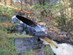 Fill: 12m. Metal bar blocking inlet causes inlet drop. 10% blockage. Water is orange colored and dirty. Large outlet perch. Large drop directly after outlet, a large cascade/falls.