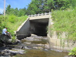 Natural armoring- bedrock. Stream splits upstream- one channel carries majority of flow. Small waterfalls downstream.