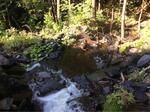 Steep stream with lots of cascades and drops both down and upstream of culvert. Small footbridge that spans banks located upstream of inlet, shown in upstream photo.; Outlet flows right into long cascade down to where the stream flows into the Kennebec*