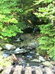 Steep stream with lots of cascades and drops both down and upstream of culvert. Small footbridge that spans banks located upstream of inlet, shown in upstream photo.; Outlet flows right into long cascade down to where the stream flows into the Kennebec*