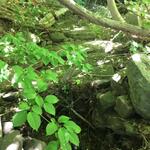 Stone and debris about 20' downstream, low flow stream goes under, high flows stream looks like it flows overtop.