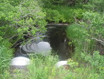 Partially Impedes Aop. 2 Culverts of different Size, Flow Higher in the small one.