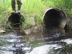 Partially Impedes Aop. 2 Culverts of different Size, Flow Higher in the small one.