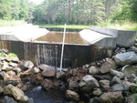 dam creates head pond that overflows into culvert below. No fish passage through culvert possible.