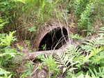 Outlet 25% blocked by branches; no water exiting outlet because it's rusted out; road caving in along length of culvert; no wetland upstream; bank height above culvert 1.8m