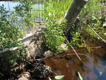Potentially Impedes AOP. Upstream = Hodgdon Pond; Fence for beaver = barrier: wood debris