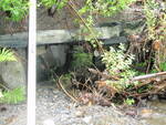 bridge made with granite block abutments & slate top; natural bottom under bridge; some slate lining stream bottom over boulders drop is 1.1 to pool