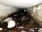 stream in road ditch upstream, concrete slabs, 3 sided- no bottom