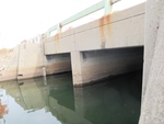 Concrete center support stucture. Measured as one span. Unknown whether it is natural bottom or cement. Could not access.