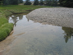 Does Not impede AOP. Armoring on streambed = boulders: to stock the dirt?; Sediment upstream, about 50m