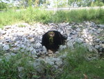 Large rip-rap at inlet preventing passage at low flow. Same problem at outlet, water runs under rip-rap.