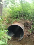 no water coming out outlet . large fish in scour pool but not enough water for fish to swim down.
