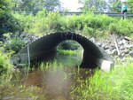 Fill: 1.1m. Corrugated metal pipe arch on top of concrete abutments. Abutment height: 1.15m.