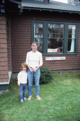 Library President Sharon Casey stands with her daughter, Winter, outside the East Blue Hill Public Library in Blue Hill, Maine.