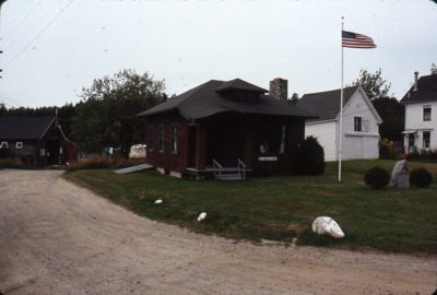 Public libraries; flags; East Blue Hill Public Library; East Blue Hill, Maine