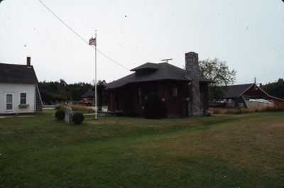 Public libraries; flags; East Blue Hill Public Library; East Blue Hill, Maine