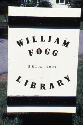 The sign outside the library in Eliot, Maine, reads, "William Fogg Library estb. 1907."