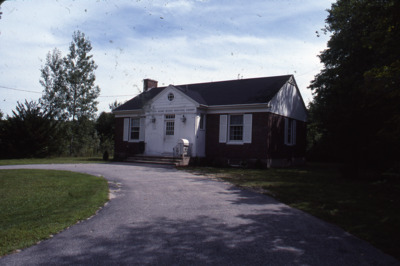 The Julia Adams Morse Memorial Library, in Greene, Maine, seen here before its expansion, sits near a neat plot of grass.