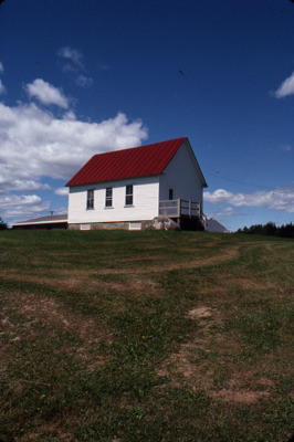 The library in Harmony, Maine, now closed, stands on a sunny hillside.