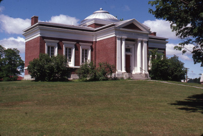 The classical revival style of the J. Carnegie Library at the Good-Will Hinckley School in Fairfield, Maine, boasts columns and a dome.