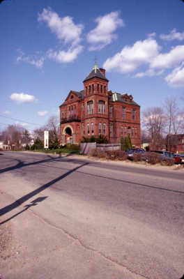 The Rice Public Library in Kittery, Maine, towers majestically against the sky.