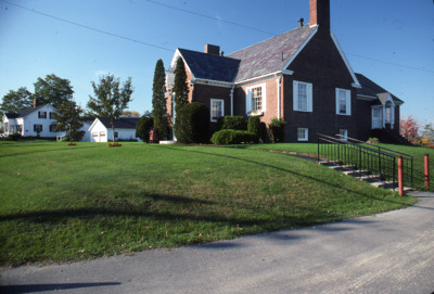 The handsome brick Lincoln Memorial Library, in Lincoln, Maine, sits in the autumn sun.