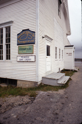 The Milbridge Town Library (now the Milbridge Public Library) used to share quarters with an attorney and a veterinary clinic.
