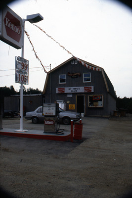 One of the former homes of the New Vineyard Public library in New Vineyard, Maine was apparently a Kenoco gas station called "My Wife's Place."