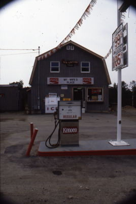 One of the former homes of the New Vineyard Public library in New Vineyard, Maine was apparently a Kenoco gas station called "My Wife's Place."
