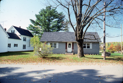 Autumn leaves strew the lawn at the Sherman Public Library in Sherman, Maine.