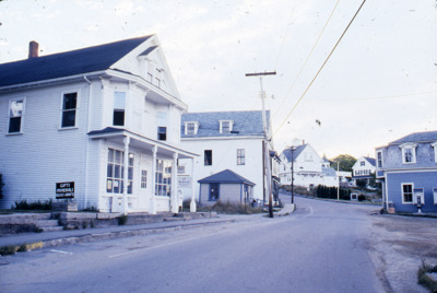 The Stonington Public Library, in Stonington, Maine, is housed in a handsome white building with turned columns.