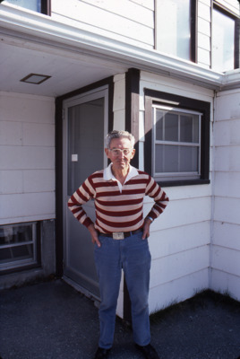 Librarian Jerome Hopson poses outside the former Stratton Public Library in Stratton, Maine.