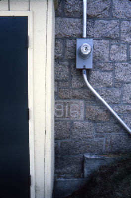 The cornerstone of the Charles M. Bailey Public Library, in Winthrop, Maine, should read 1916, but a door jamb blocks the first number.