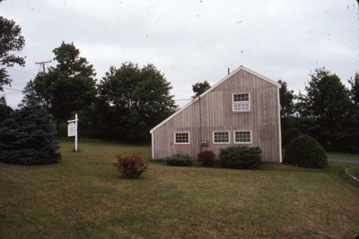 The Bremen Public Library, in Bremen, Maine, stands under cloudy skies.
