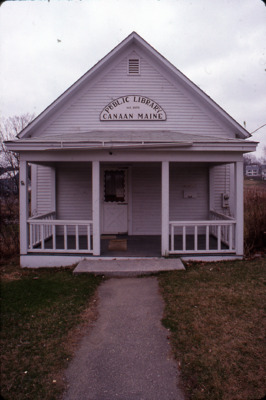 A deep porch fronts the old Canaan Public Library in Canaan, Maine. The library was updated in 2014.