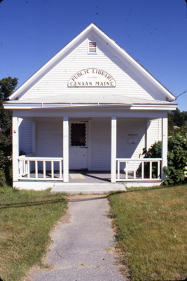 A deep porch fronts the old Canaan Public Library in Canaan, Maine. The library was updated in 2014.