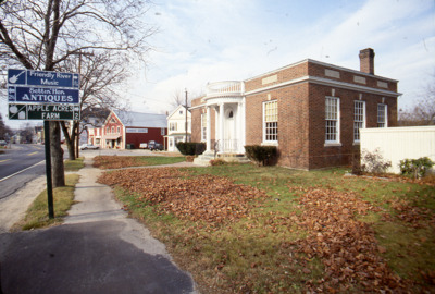 The main road of the village runs past the Bonney Memorial Library in Cornish, Maine.